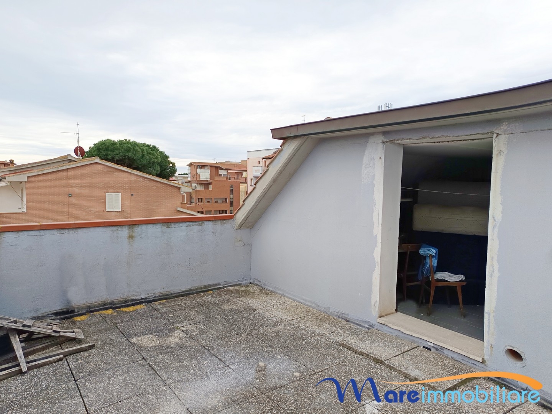 Marina di Grosseto – Zona centrale In posizione strategica, in via IV Novembre, a pochi passi dal mare e con tutti i principali servizi comodamente raggiungibili, proponiamo in vendita appartamento su due livelli situato al secondo ed ultimo piano di elegante palazzina servita da ascensore. L’immobile si compone di luminoso soggiorno con angolo cottura e accesso a terrazza abitabile, ideale per momenti di relax all’aperto, ampia camera matrimoniale e bagno. Una scala interna conduce al piano superiore ad uso deposito occasionale, composto da due spaziosi vani, secondo bagno e terrazza scoperta. Il deposito occasionale è parzialmente da ristrutturare. Soluzione ideale per chi desidera ampi spazi, comfort e una posizione privilegiata a pochi metri dalla spiaggia, perfetta sia come abitazione principale che come casa vacanze.
